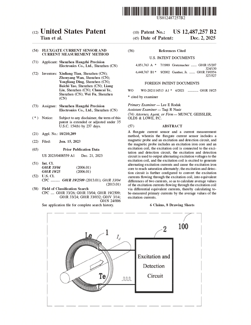深耕高精度電量測量技術多年,航智始終秉持“技術為驅動,客戶為中心,品質為生命線”的理念,憑借自主核心技術構建起覆蓋電流傳感器、電壓傳感器、電測儀器儀表的完整產品線,產品廣泛應用于新能源、醫療設備、計量校準、科研院所、軌道交通等關鍵領域。此次美國發明專利的獲批,是航智技術創新之路的重要里程碑,更是服務全球客戶的新起點。