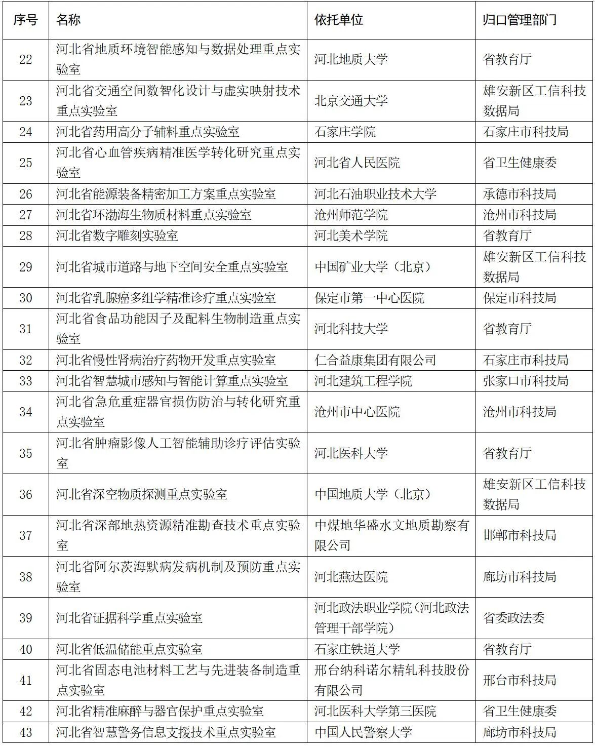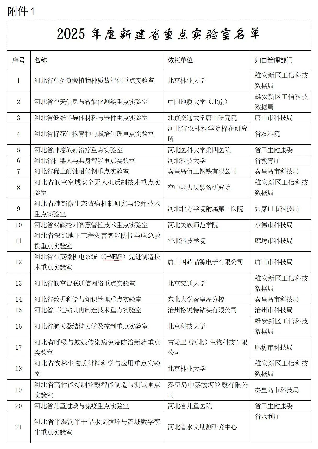 河北省科學(xué)技術(shù)廳關(guān)于公布2025年新建省重點實驗室和省技術(shù)創(chuàng)新中心名單的通知