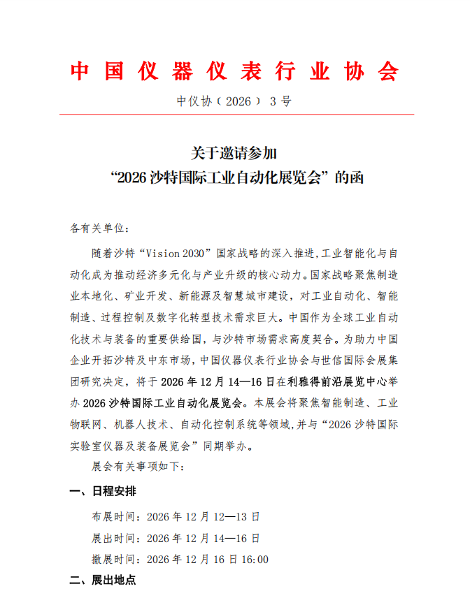 關于邀請參加“2026 沙特國際工業自動化展覽會”
