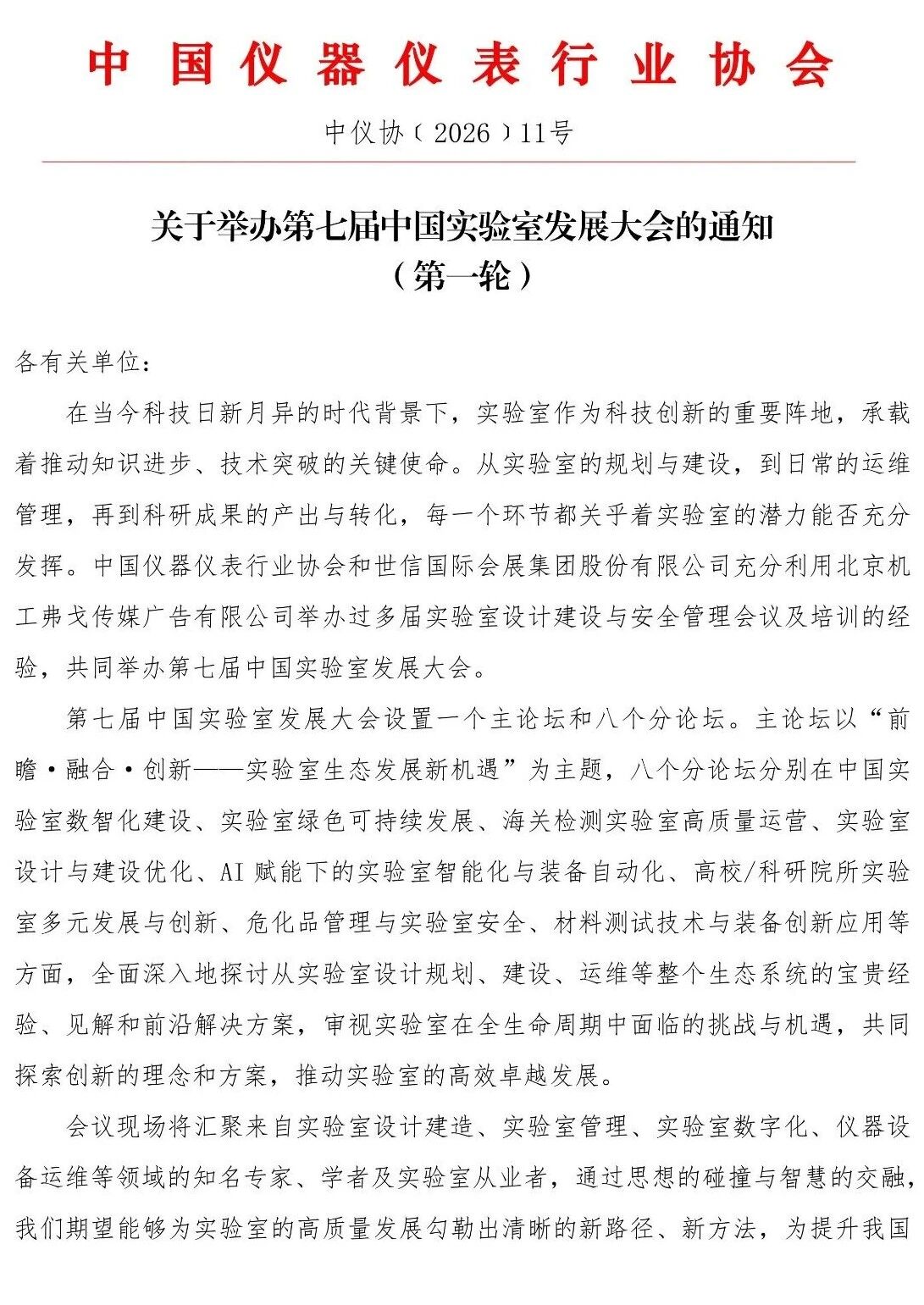 關(guān)于舉辦第七屆中國(guó)實(shí)驗(yàn)室發(fā)展大會(huì)的通知(第一輪)