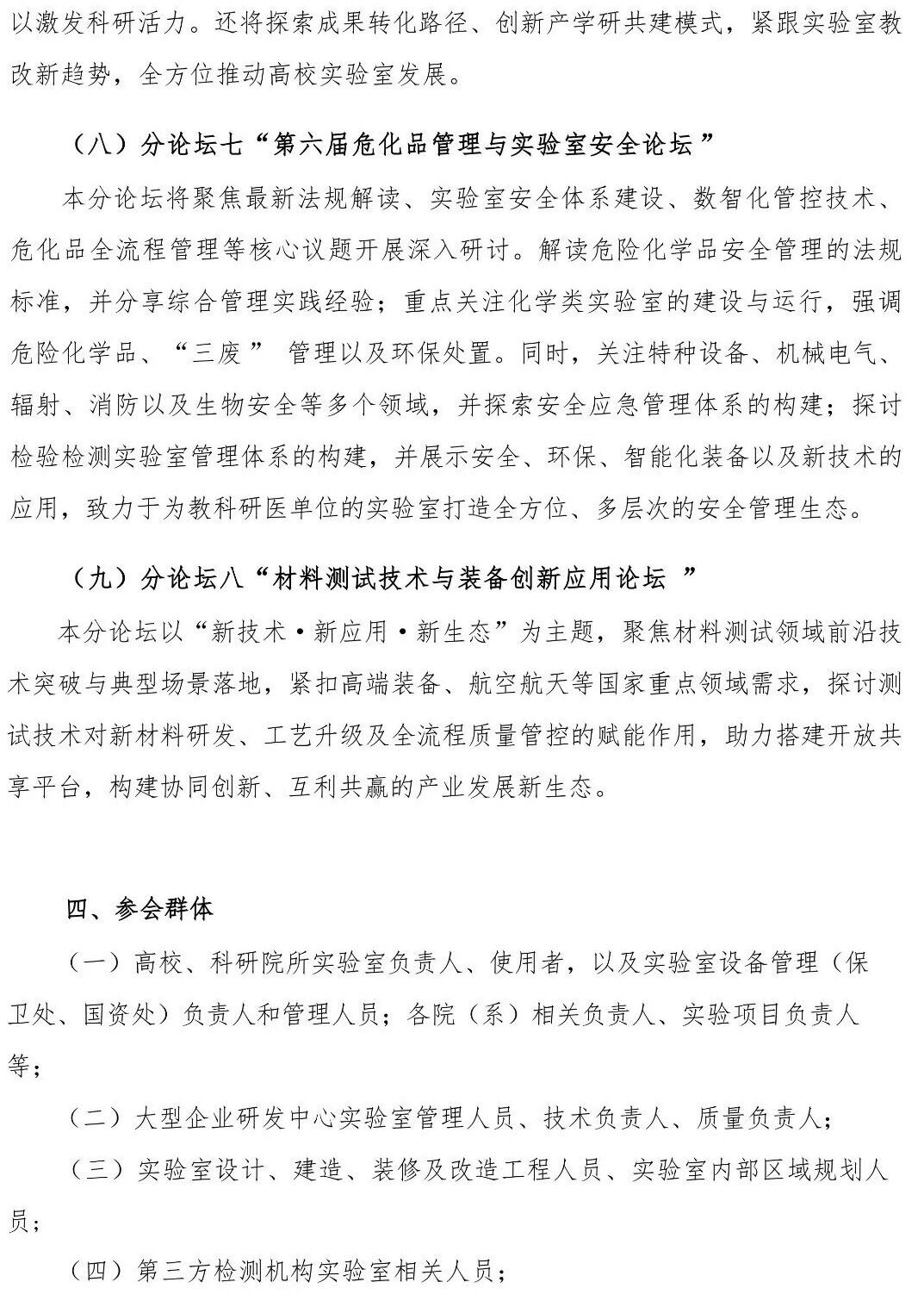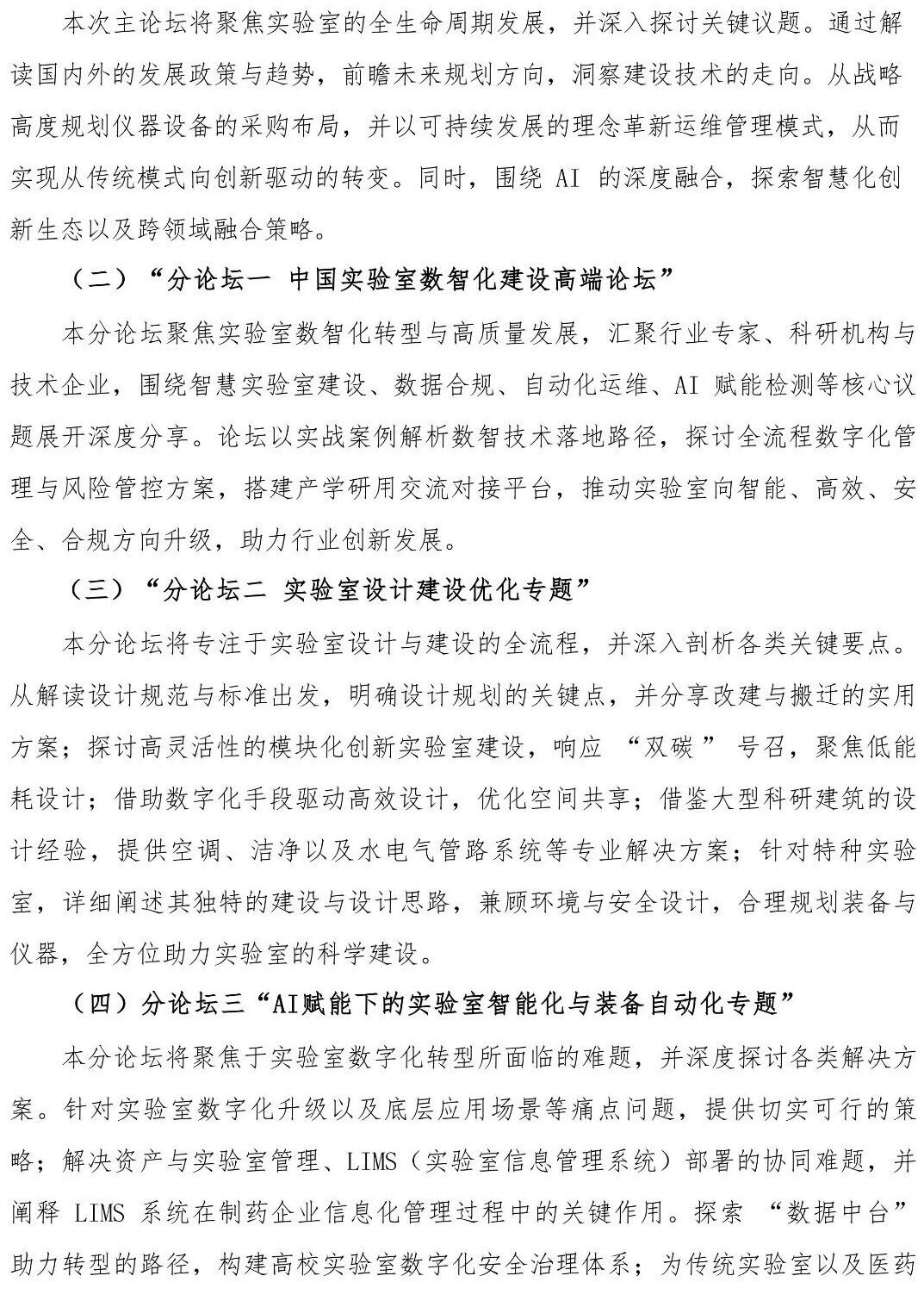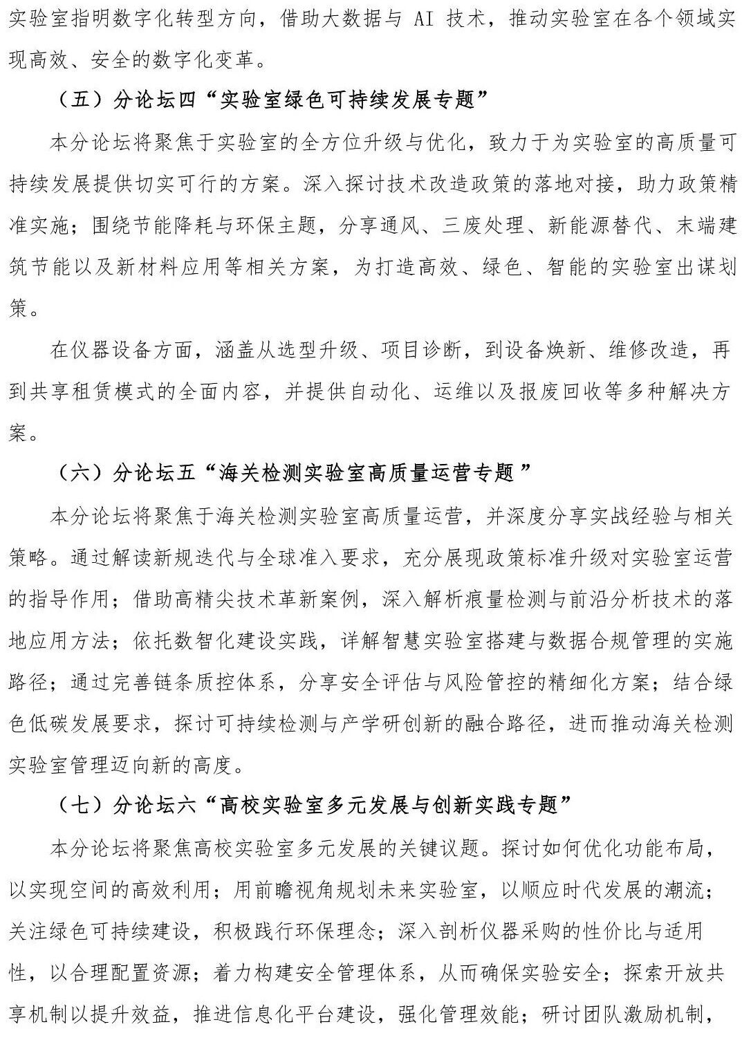 第七屆中國(guó)實(shí)驗(yàn)室發(fā)展大會(huì)設(shè)置一個(gè)主論壇和八個(gè)分論壇。主論壇以前瞻・融合・創(chuàng)新——實(shí)驗(yàn)室生態(tài)發(fā)展新機(jī)遇”為主題,八個(gè)分論壇分別在實(shí)驗(yàn)室綠色可持續(xù)發(fā)展、海關(guān)檢測(cè)實(shí)驗(yàn)室高質(zhì)量運(yùn)營(yíng)、實(shí)驗(yàn)室設(shè)計(jì)建設(shè)與優(yōu)化、AI賦能下的實(shí)驗(yàn)室智能化與裝備自動(dòng)化、高校/科研院所實(shí)驗(yàn)室多元發(fā)展與創(chuàng)新、危化品管理與實(shí)驗(yàn)室安全、中國(guó)實(shí)驗(yàn)室數(shù)智化建設(shè)、材料測(cè)試技術(shù)與裝備創(chuàng)新應(yīng)用等方面,全面深入地探討從實(shí)驗(yàn)室設(shè)計(jì)規(guī)劃、建設(shè)、運(yùn)維等整個(gè)生態(tài)系統(tǒng)的寶貴經(jīng)驗(yàn)、見解和前沿解決方案,審視實(shí)驗(yàn)室在全生命周期中面臨的挑戰(zhàn)與機(jī)遇,共同探索創(chuàng)新的理念和方案,推動(dòng)實(shí)驗(yàn)室的高效卓越發(fā)展。