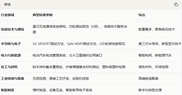 76項(xiàng)團(tuán)體標(biāo)準(zhǔn)集中在新一代信息技術(shù)、新能源、高端制造三大領(lǐng)域,高技術(shù)含量、高產(chǎn)業(yè)關(guān)聯(lián)、高市場價(jià)值是這批標(biāo)準(zhǔn)被國家標(biāo)準(zhǔn)委采信的重要原因。