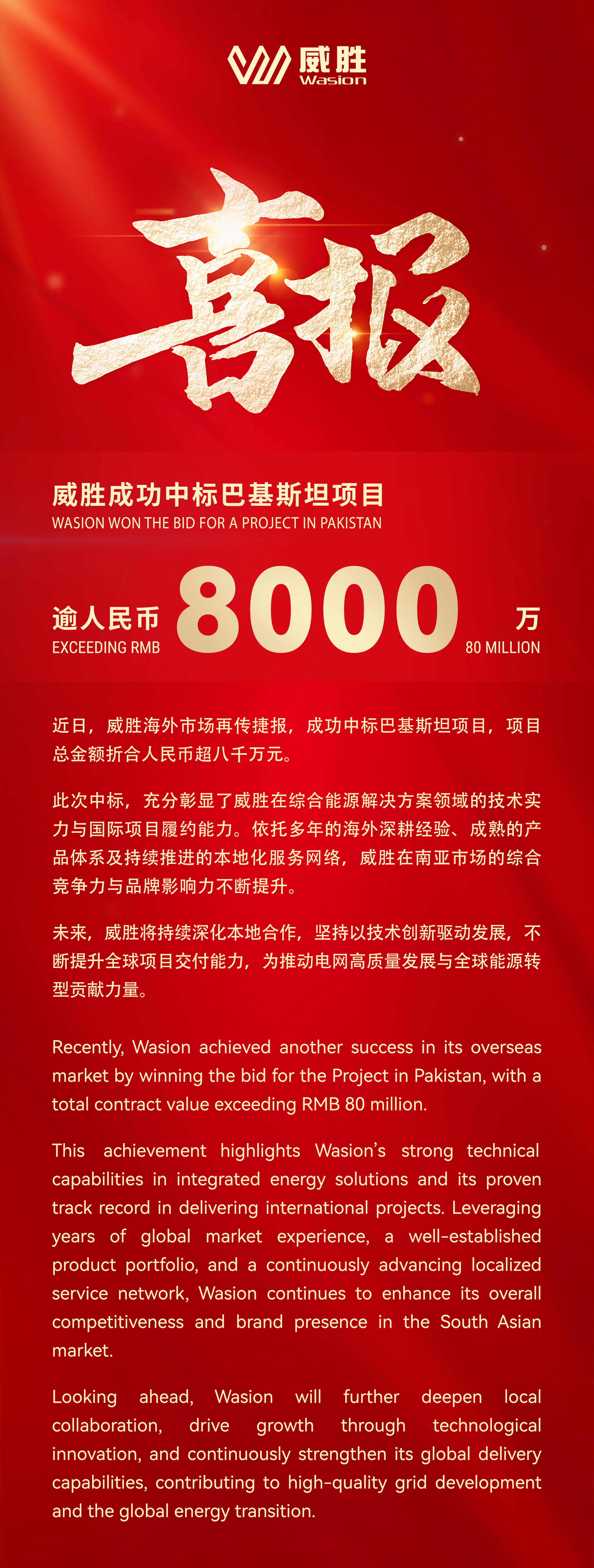 威勝成功中標(biāo)巴基斯坦項目,中標(biāo)金額超8000萬元